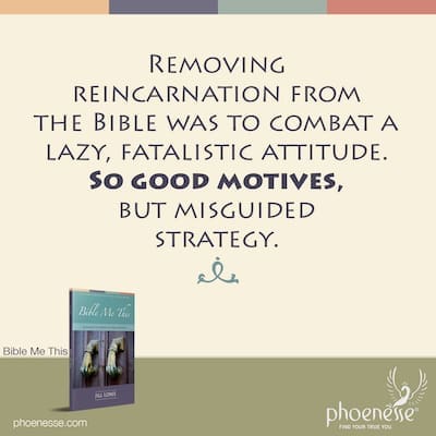 Removing reincarnation from the Bible was to combat a lazy, fatalistic attitude. So good motives, but misguided strategy.