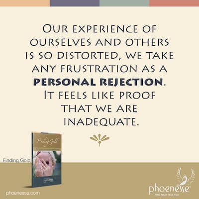 Basically, our experience of ourselves and others is so distorted, we take any frustration as a personal rejection. In other words, it feels like proof that we are inadequate.