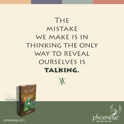 The mistake we make is in thinking the only way to reveal ourselves is by talking. Yes, that’s one means for expressing certain facets. But that’s all it is.