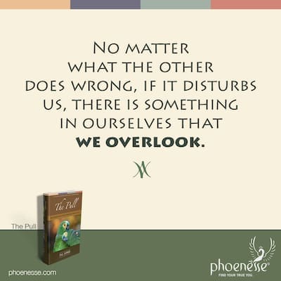 The bottom line is this: no matter what the other does wrong, if it disturbs us, there is something in ourselves that we overlook. In this case, being disturbed doesn’t refer to clear-cut anger, where we express ourselves free of guilt and don’t end up feeling any trace of inner confusion or pain.
